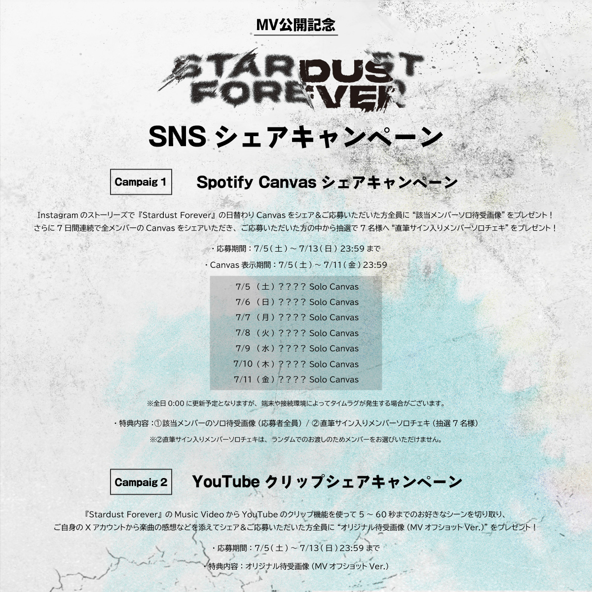 『Stardust Forever』のMV公開を記念して、SNSシェアキャンペーンの実施が決定いたしました!