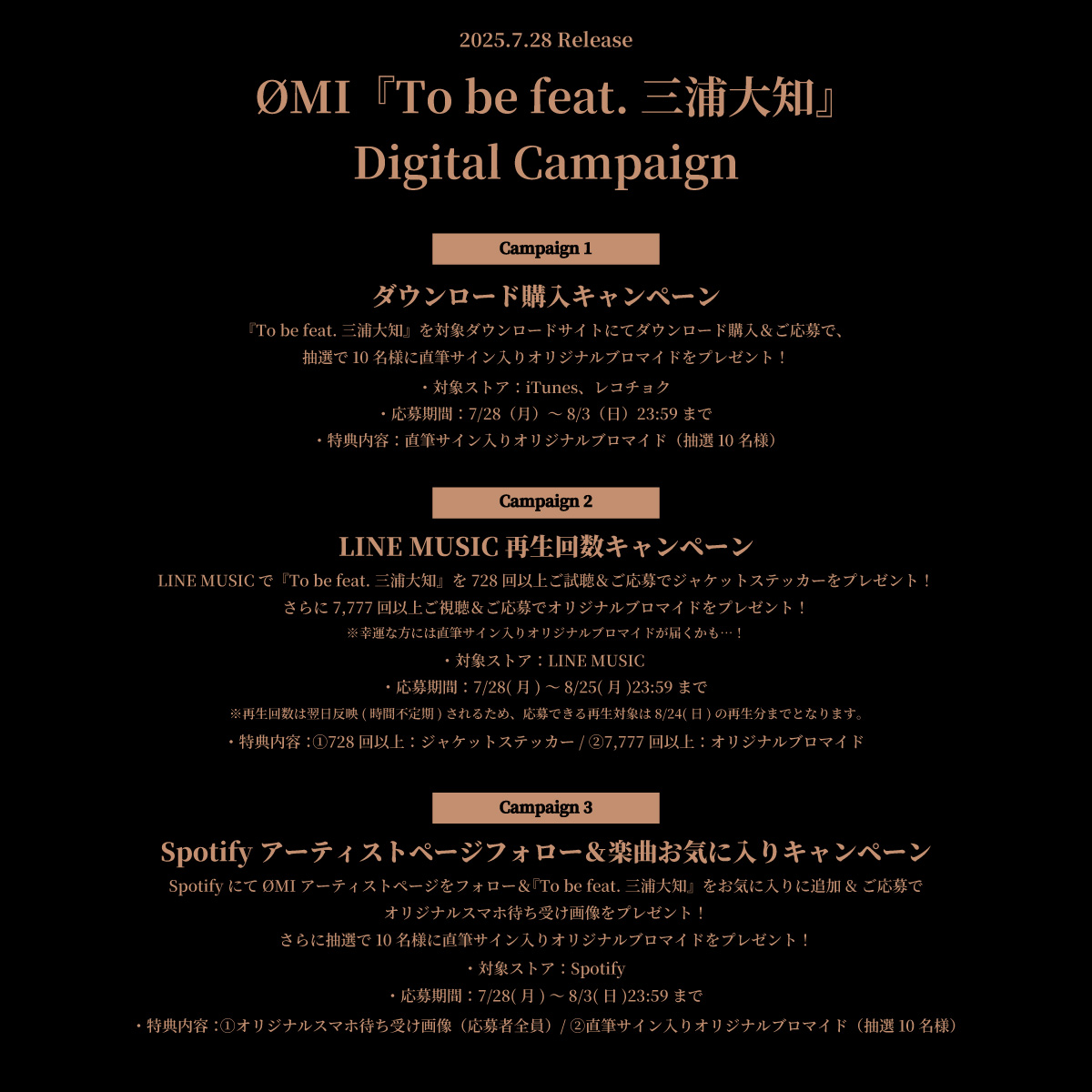 7/28(月)配信のØMI デジタルシングル『To be feat. 三浦大知』リリースにあわせて、キャンペーンの実施が決定いたしました!