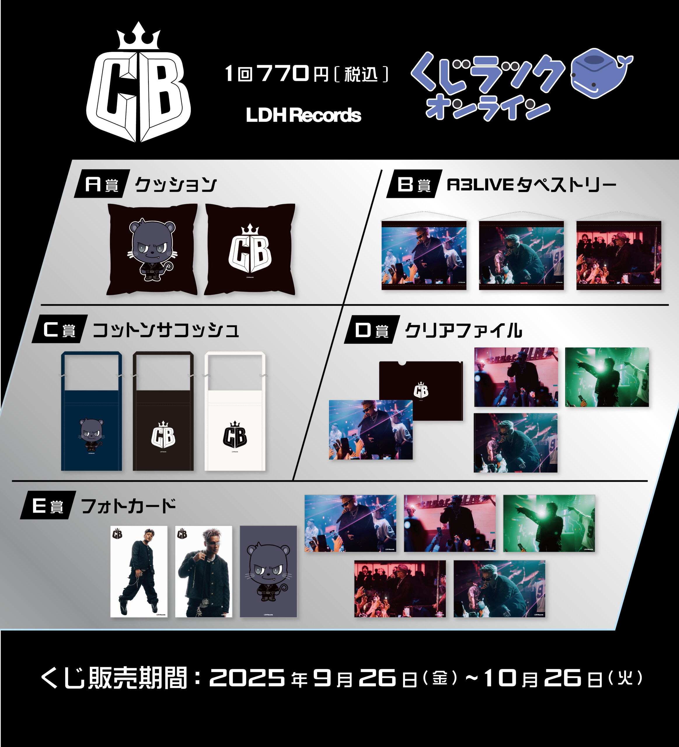 「ICE CREAM feat. Aile The Shota」のリリースを記念して『CB』とコラボレーションした、ハズレ無しでオリジナルグッズがゲットできるオンラインくじ「くじラックオンライン」を2025年9月26日(金)より販売いたします。賞品は新規ビジュアルを含むA賞~E賞まで、さらに、くじ1枚ご購入ごとにWチャンス賞の抽選が行われ、当選した方は特別な賞品が獲得できます。