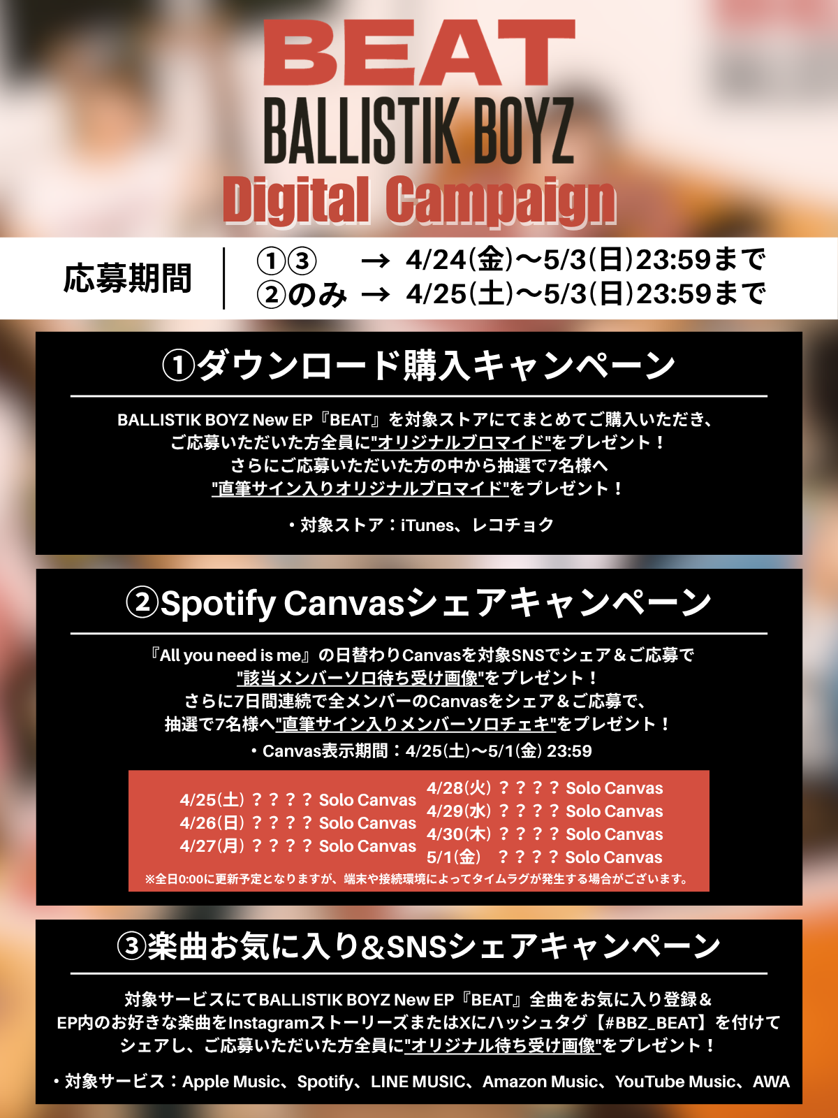 4/24(金)配信、BALLISTIK BOYZ New EP『BEAT』リリースを記念して、各サービスでのキャンペーン実施が決定しました!